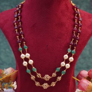 Red,Green and SCS Pearl kambi Mala 2 Rows