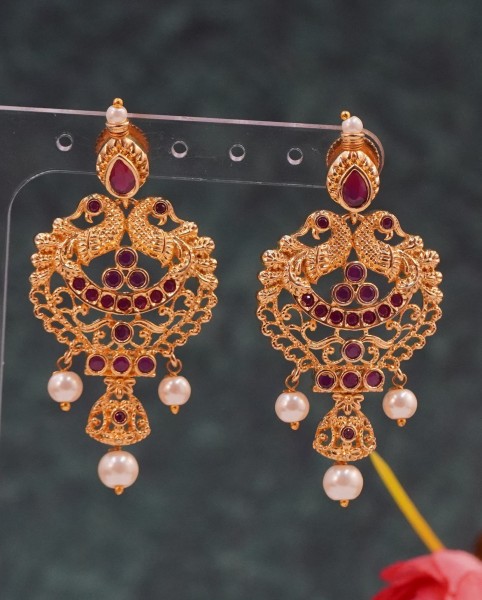 Discover handcrafted Antique Kempu Stone Hanging earrings, designed to bring timeless elegance and vibrant tradition to your festive wardrobe.
