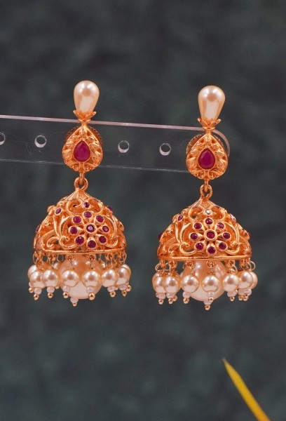 Discover exquisite Antique Red Stone Jhumki earrings crafted with rich red stones and vintage designs—ideal for weddings, festivals, and traditional occasions.
