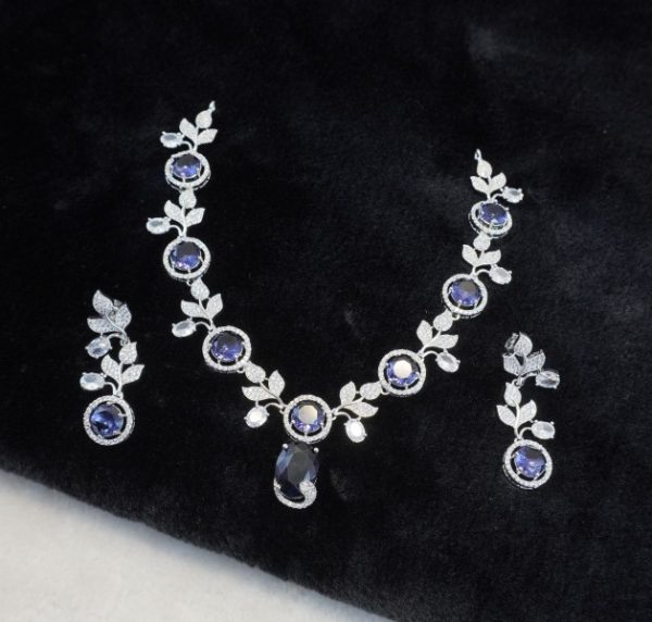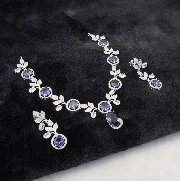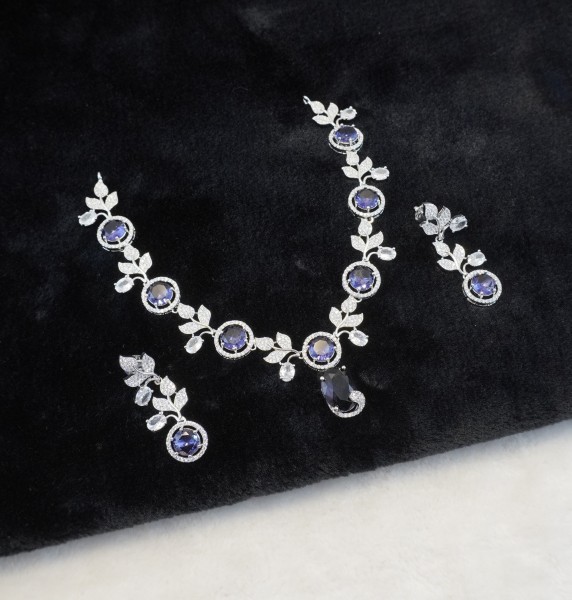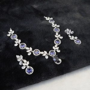 Shop the Blue and CZ RH Necklace Set for a luxurious touch. Featuring brilliant blue stones and sparkling cubic zirconia, it’s perfect for elevating any outfit.