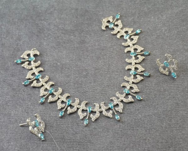 Make a bold style statement with the BT Blue and CZ RH Necklace Set. Featuring sparkling cubic zirconia and vibrant blue stones, it’s perfect for weddings, parties, and gifting.