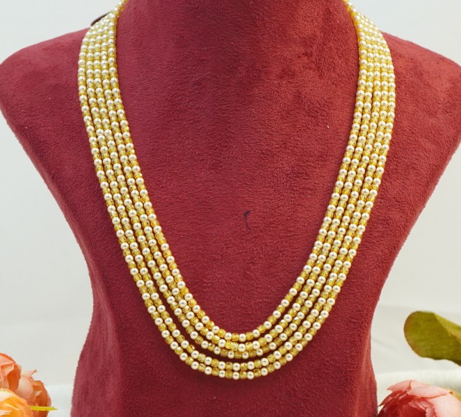 CZ Yellow and CKS Pearls Mala 5 Rows