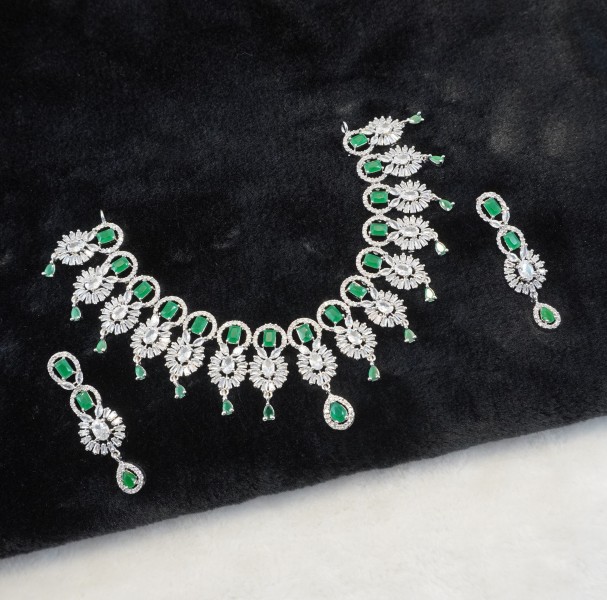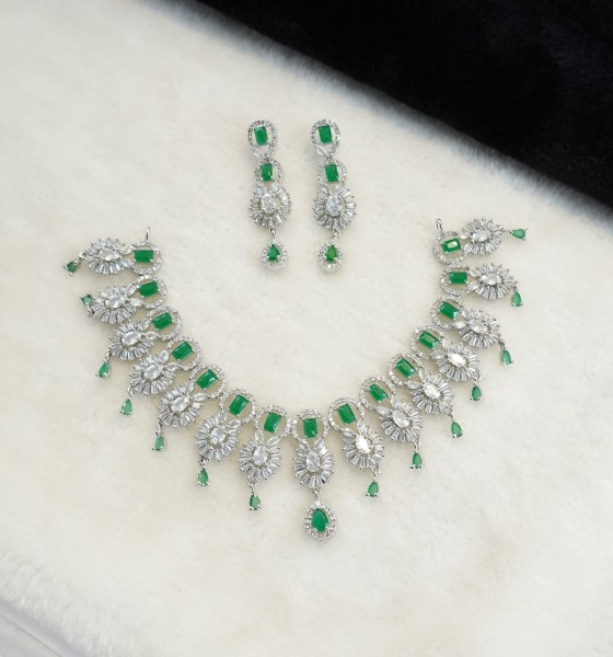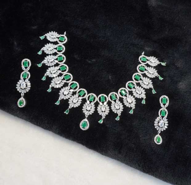 Add a touch of elegance with the Green and CZ RH Necklace Set. Featuring radiant green stones and dazzling cubic zirconia, it’s the perfect choice for any special occasion. Shop today!