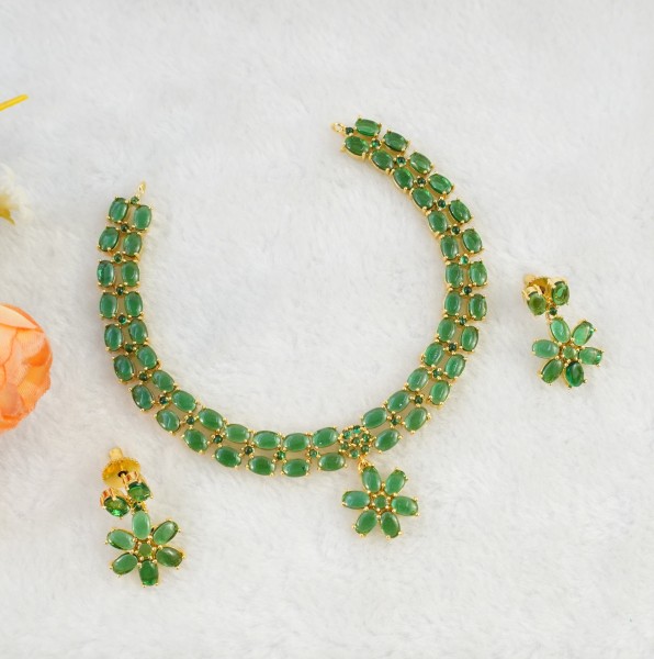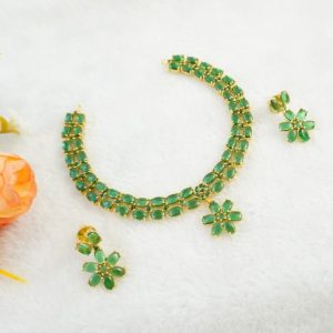 Shop this Elegant Green Necklace Set – handcrafted with vibrant stones and classic design. Ideal for weddings, festivals, and ethnic occasions.