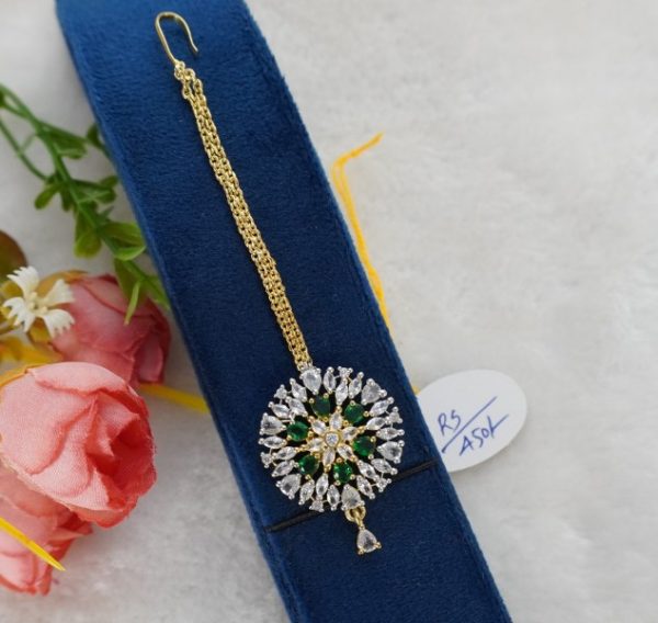 Shop Green White GJ Netti Chutti online – handcrafted with green and white stones in grand Jaipur (GJ) style. Perfect for South Indian bridal wear and classical dance.