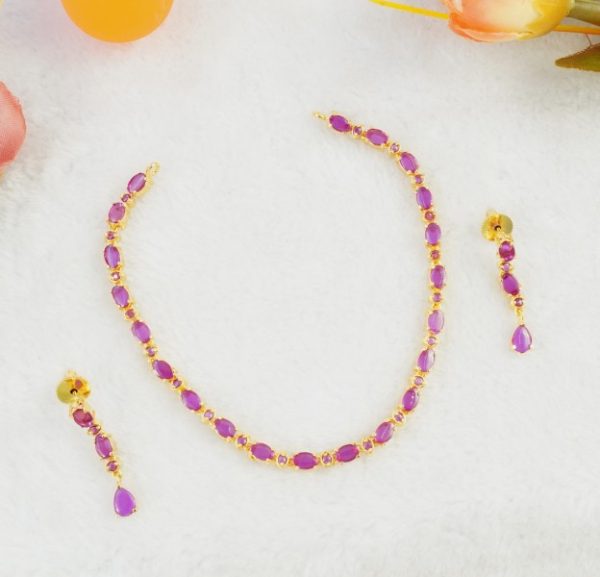 Adorn yourself with this elegant Kemp Necklace Set, featuring rich red and green stones in antique gold finish. Perfect for weddings, Bharatanatyam, and festive wear.