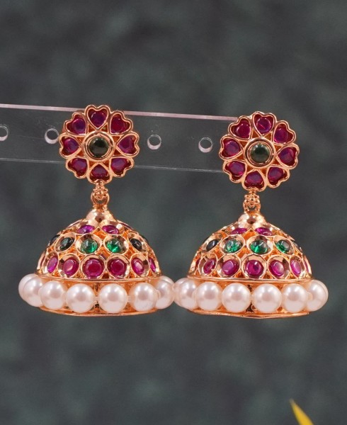 Adorn your festive look with Kempu Red & Green Jhumki earrings, beautifully crafted with traditional stones and antique finish. Shop now for elegance that lasts.