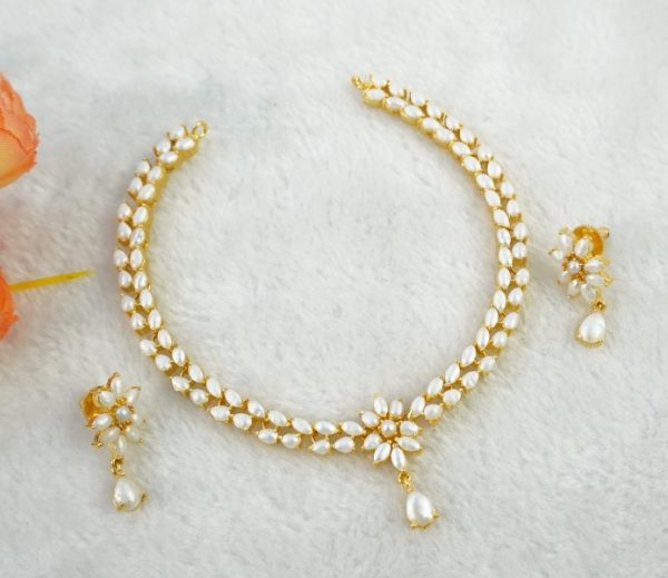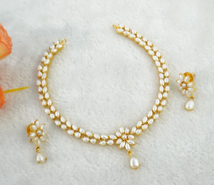 This Classic Pearl Necklace Set adds a touch of timeless elegance to any outfit. Perfect for weddings, parties, or everyday ethnic wear.