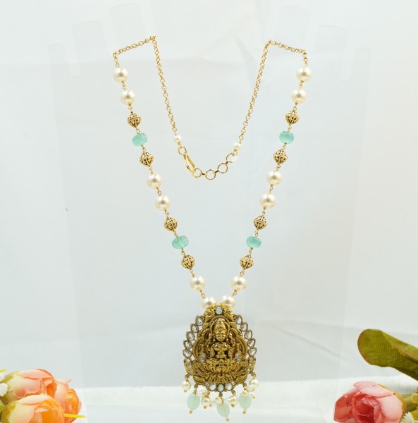 Shop this Pista Green and CKS Pearls Kambi Mala – a delicate, elegant accessory perfect for weddings, festivals, and everyday ethnic wear.