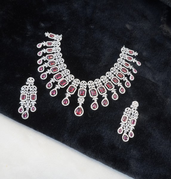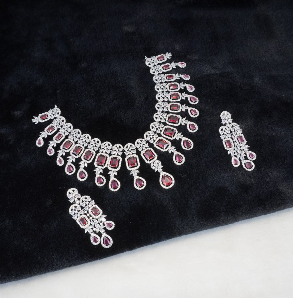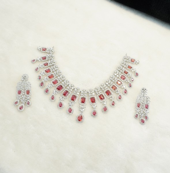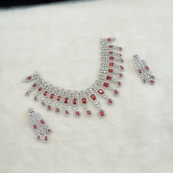 Find the perfect blend of luxury and style with our Red and CZ RH Necklace Set. Crafted for sophistication, ideal for all occasions. Order yours today!