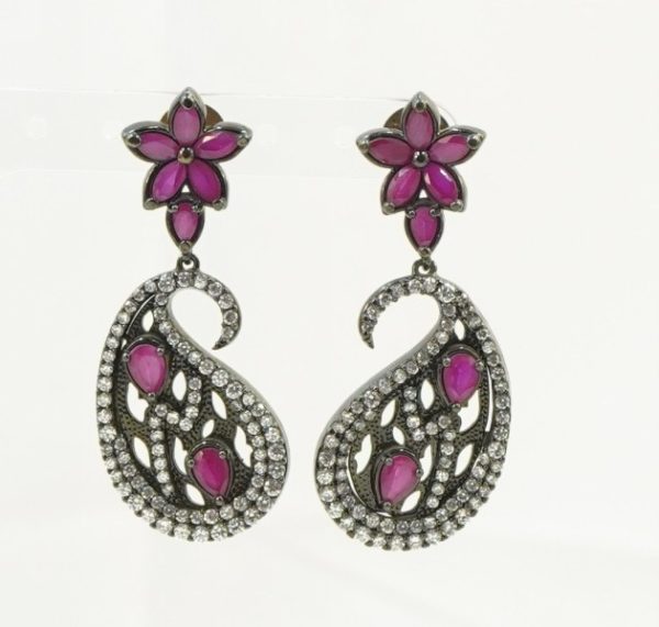 Adorn your ears with stunning Red and White Stone Ear Hangings. Designed for elegance and sparkle, perfect for weddings, festivals, and ethnic celebrations.