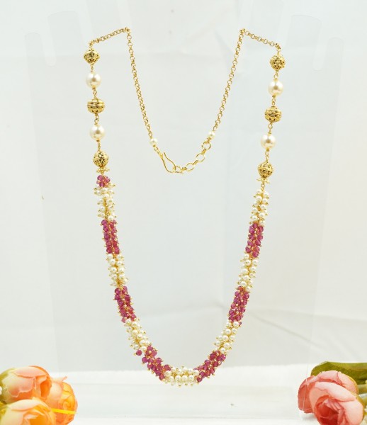 Shop the Red Beads and CKS Pearls Mala – a graceful blend of vibrant red beads and luminous CKS pearls, handcrafted for ethnic elegance. Perfect for festive wear, gifting, or everyday styling.