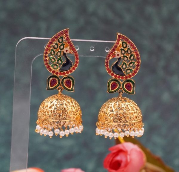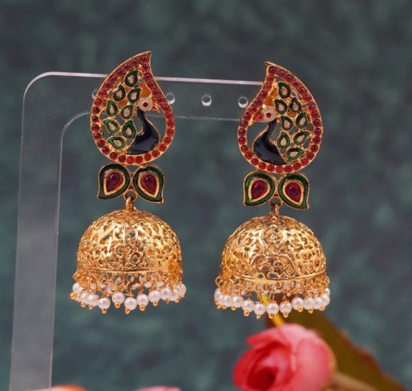 Discover 7 timeless Red & Green Antique Jimikki earrings that combine tradition, elegance, and South Indian heritage. Perfect for weddings, festivals, and gifting.