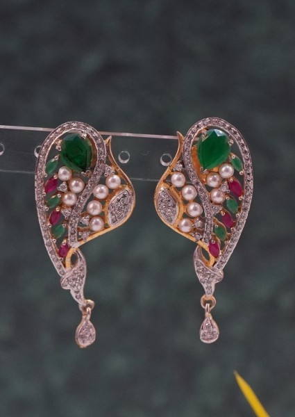 Explore handcrafted Red & Green Ganga Jumuna Hanging earrings—crafted in dual-tone finishes with traditional charm. Perfect for weddings and festive occasions!