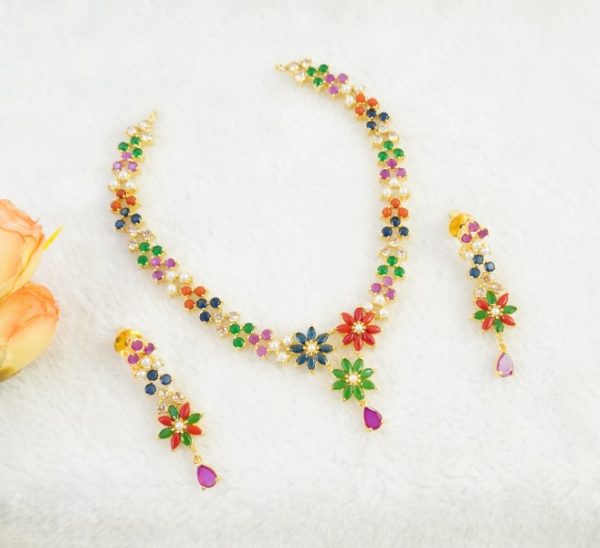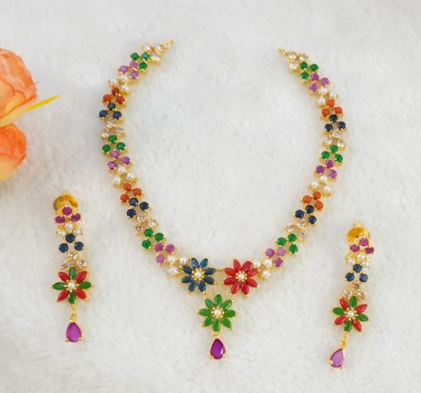 Wear tradition and cosmic energy with the Navarathna Necklace Set – crafted with 9 sacred gemstones to attract harmony, protection, and prosperity. Ideal for festivals and gifting.