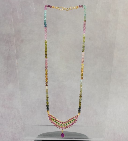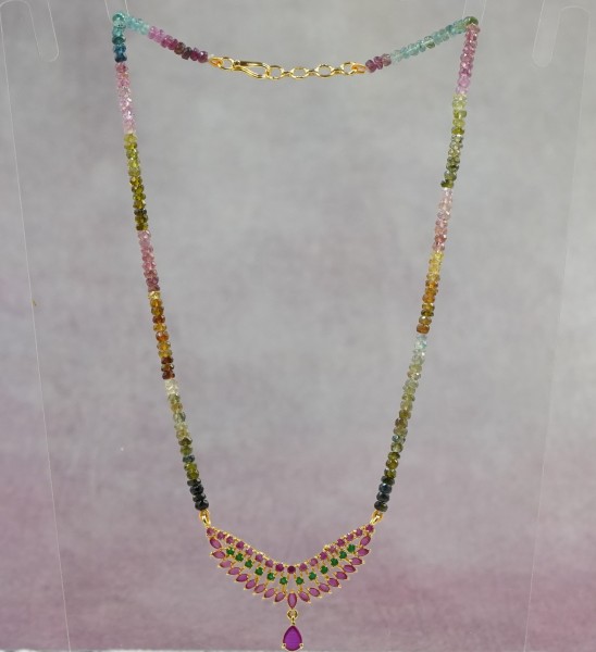 Add color and grace with this Tourmaline Beads with Red and Green Pendant Set – a perfect choice for weddings, festivals, or traditional celebrations.